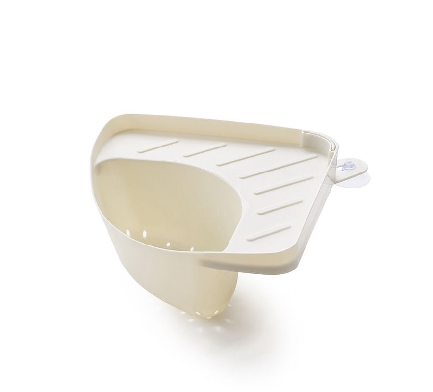 Corner base of sink organization, made of perforated plastic.