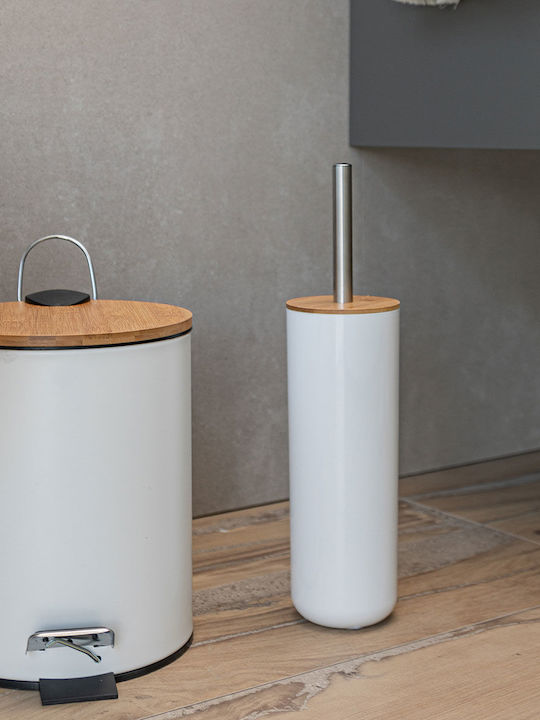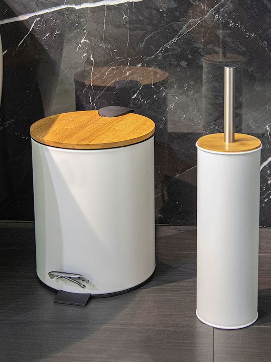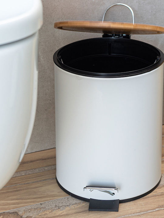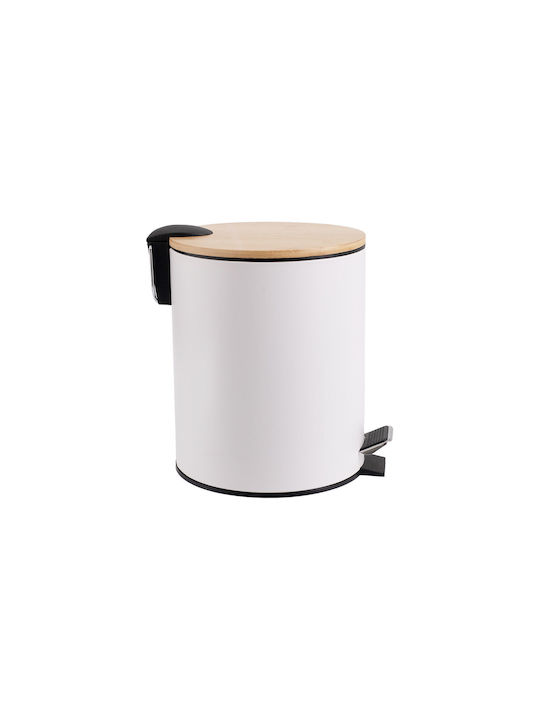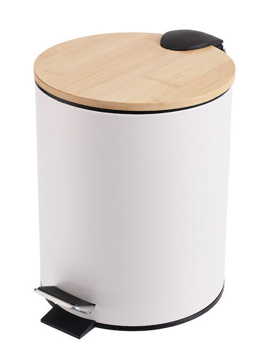 Κάδος απορριμμάτων χωρητικότητας 5lt από την εταιρεία εstia. Είναι κατασκευασμένος από μεταλλικό υλικό σε λευκό χρώμα με επίστρωση πούδρας που τον καθιστά ιδιαίτερα ανθεκτικό. Το καπάκι του είναι από υψηλής ποιότητας bamboo σε φυσικό χρώμα. Διαθέτει εσωτερικό πλαστικό δοχείο για εύκολο πλύσιμο και έχει αθόρυβο κλείσιμο.