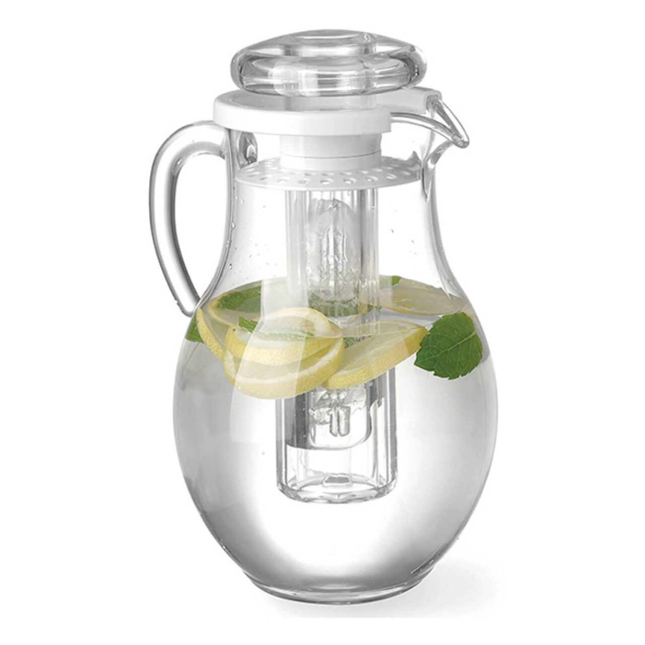 Κανάτα ακρυλική με χωρητικότητα 3 lt. To αχλαδόσχημο μοντέλο είναι ανθεκτικό στα χτυπήματα – καπάκι από διαφανές πλαστικό SAN. Διαθέτει θήκη για πάγο στο κέντρο.