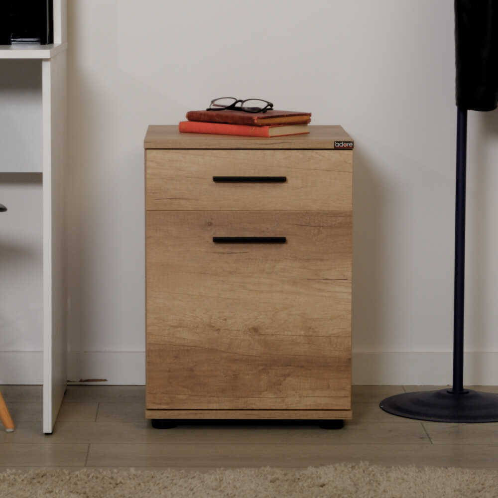 Το κομοδίνο της εταιρείας Adore είναι κατασκευασμένο από μοριοσανίδα (νοβοπάν), ένα παράγωγο ξύλου από μικρά κομμάτια ξύλου και πριονίδι. Εξωτερικά διαθέτει επένδυση μελαμίνης, η οποία προσφέρει ανθεκτικότητα στα γρατζουνίσματα, στην τριβή και στα διαβρωτικά. Το ντουλάπι και το συρτάρι που διαθέτει, παρέχουν τον απαραίτητο αποθηκευτικό χώρο για μικροαντικείμενα.