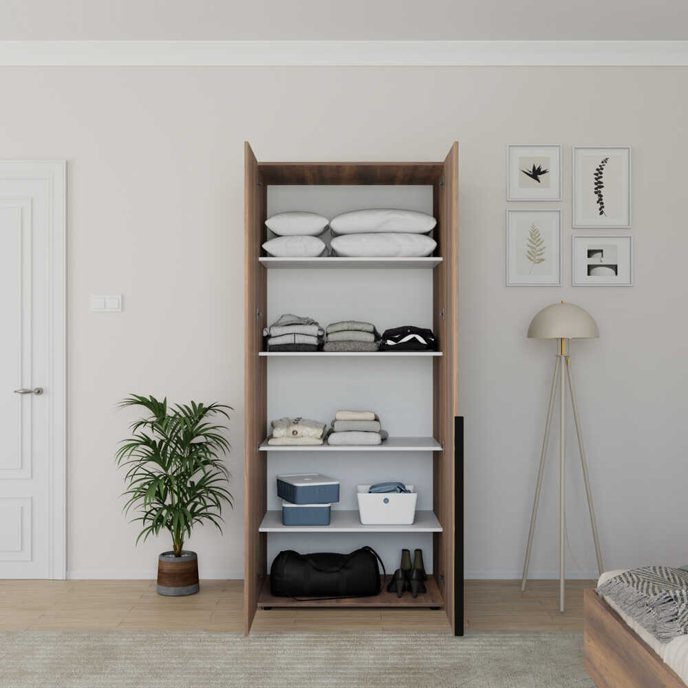Ντουλάπα 2 Πόρτες 5 ράφια-Σκούρα Καρυδιά
