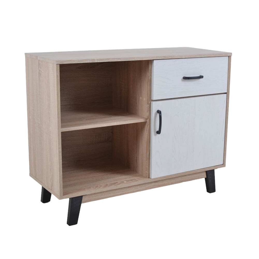 Ντουλάπι ξύλινο σε φυσικό χρώμα με ράφι, άσπρο πορτάκι και συρτάρι, κομψά πόδια και χερούλι για εύκολη χρήση σε μαύρο χρώμα. Είναι λειτουργικό με μοντέρνο σχεδιασμό και διαχρονικό στυλ. Στην συσκευασία περιλαμβάνονται οδηγίες συναρμολόγησης.