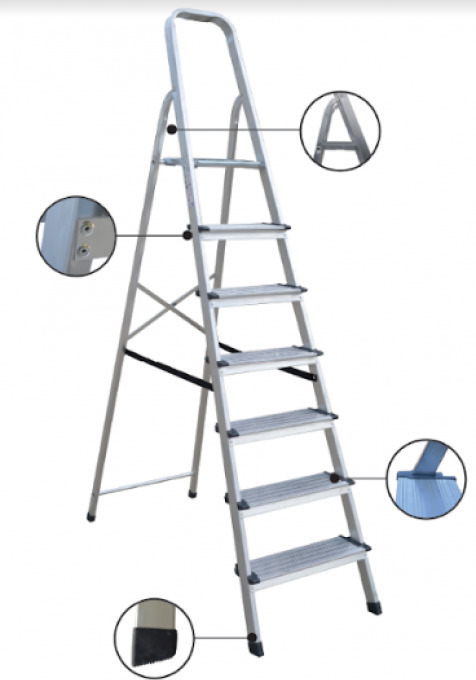Σκάλα με 6 σκαλοπάτια και πλατύσκαλο της εταιρείας Profal. Είναι κατασκευασμένη από αλουμίνιο, κάτι που την καθιστά ελαφριά έτσι ώστε να σας διευκολύνει κατά την μεταφορά της την ώρα της εργασίας.