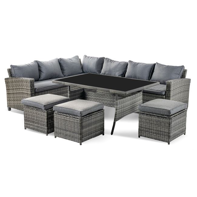 Set Μεταλ/Wicker Γκρι (Τραπ+6θ Καν.Γωνία+ 3 Σκαμπό) K/D