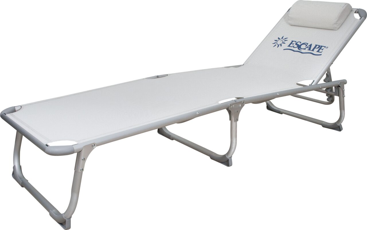 Ξαπλώστρα παραλίας αλουμινίου 28mm πάχους, με ύφασμα Textilene 2×1 από την Escape. Έρχεται με ραβδωτό σωλήνα, μαξιλάρι και ρυθμιζόμενη πλάτη. Παράλληλα αναδιπλώνεται και μεταφέρεται εύκολα.