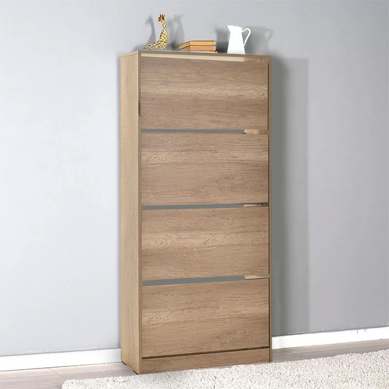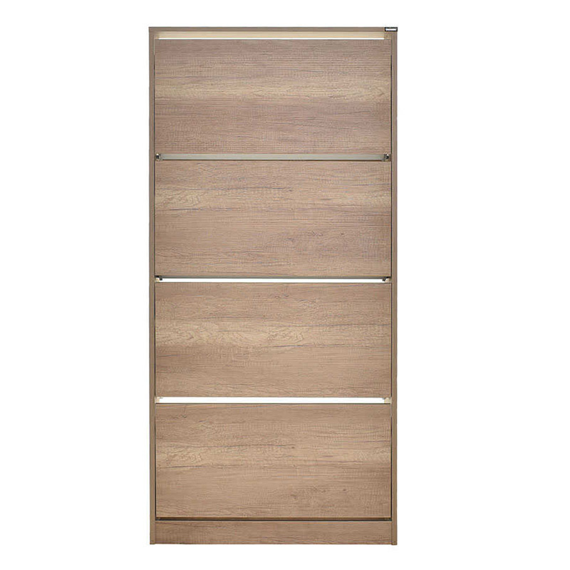 Η παπουτσοθήκη της εταιρείας Adore διαθέτει 4 ράφια για την οργάνωση, αποθήκευση και προστασία των παπουτσιών σας και είναι κατασκευασμένη από μοριοσανίδα (νοβοπάν), ένα παράγωγο ξύλου από μικρά κομμάτια ξύλου και πριονίδι. Εξωτερικά διαθέτει επένδυση μελαμίνης, η οποία προσφέρει ανθεκτικότητα στα γρατζουνίσματα, στην τριβή και στα διαβρωτικά.